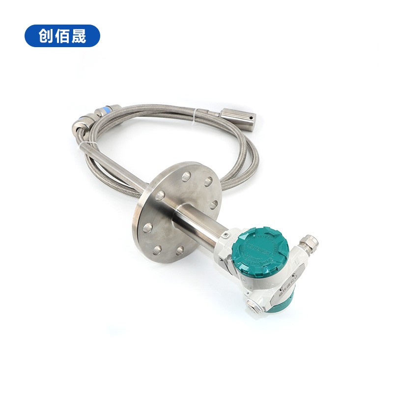 本产品为缆式磁致伸缩液位计,专用于常温常压环境下二甲苯与水的双液位准确测量。该设备采用顶装式结构,配置DN65/PN16 RF标准HG/T20592法兰连接,法兰下方含3300mm重锤组件,重锤设计打眼工艺以适配安装需求。测量元件及浮球均采用304不锈钢材质,具备优异的耐腐蚀性,可长期稳定运行于化工介质环境。